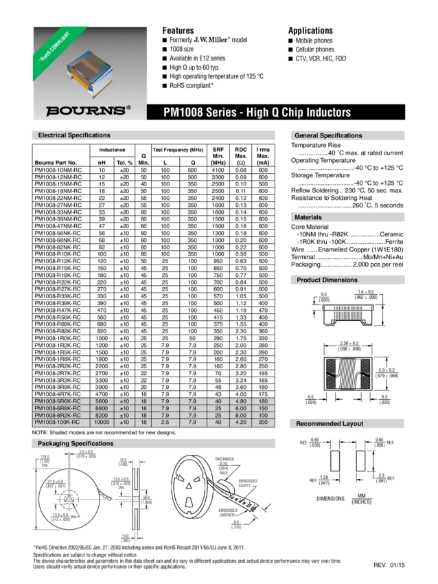Ind Chip Wirewound 100nH 10% 100MHz 60Q-Factor Ceramic 500mA 1008 T/R