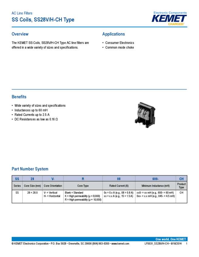 Ind Line Filter 2.5mH 1KHz 1A Pin