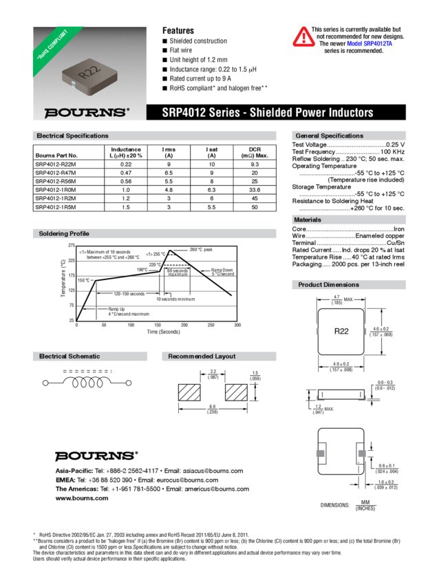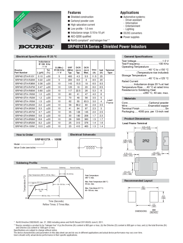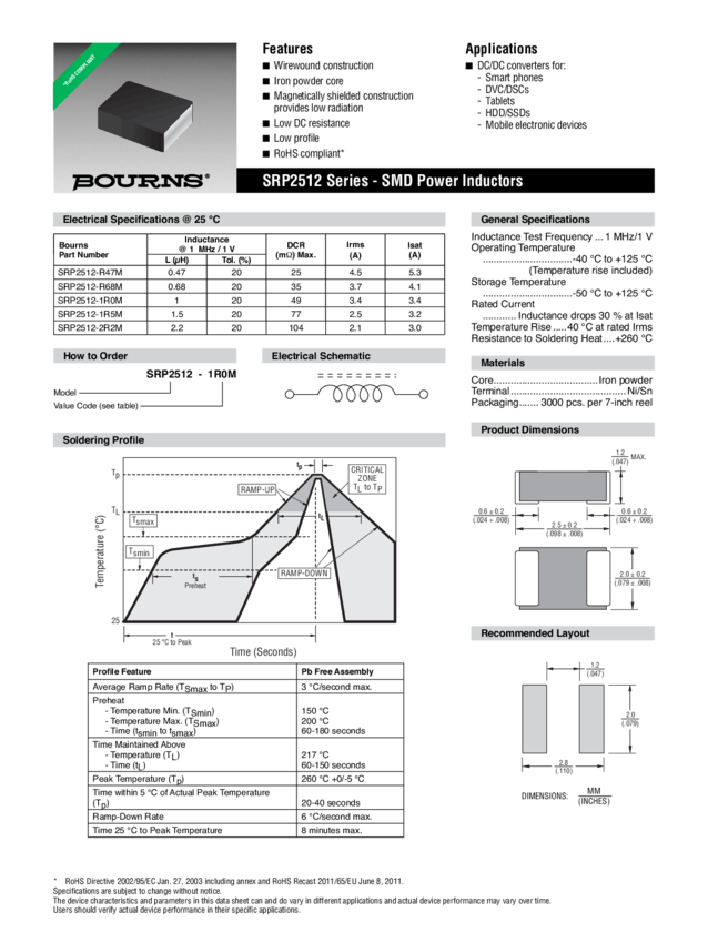 Ind Power Shielded Wirewound 470nH 20% 100KHz Carbonyl Powder 6A T/R