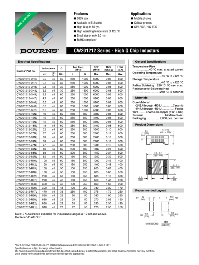 Ind Chip Wirewound 750nH 5% Ferrite 0805 T/R