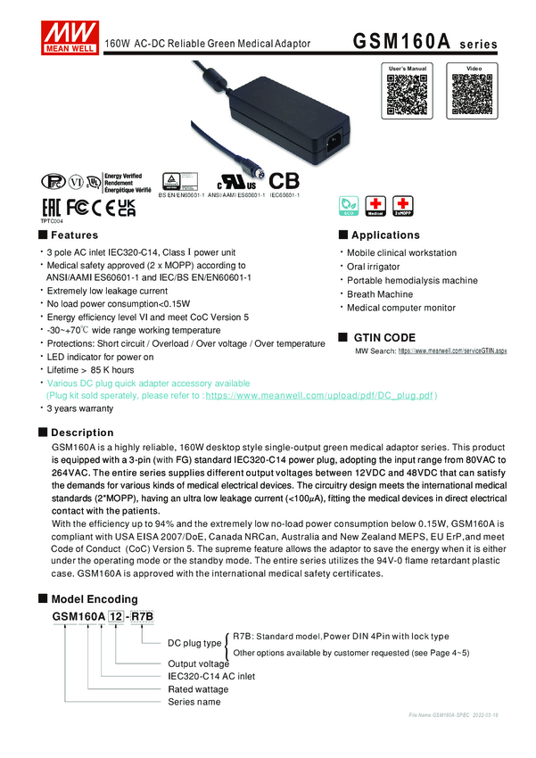 Zasilacz stałonapięciowy MEAN WELL GSM160A48-R7B GSM160A48-R7B 3.34 A 160 W