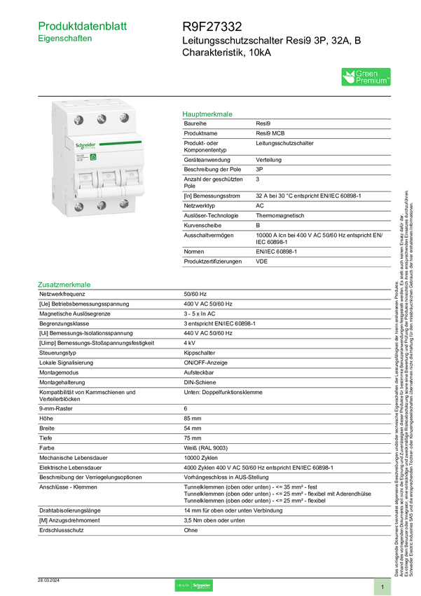 Wyłącznik automatyczny Schneider Electric R9F27332