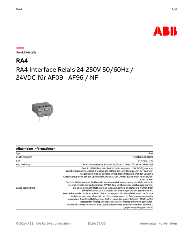 Przekaźnik interfejsowy ABB RA4 1 szt.