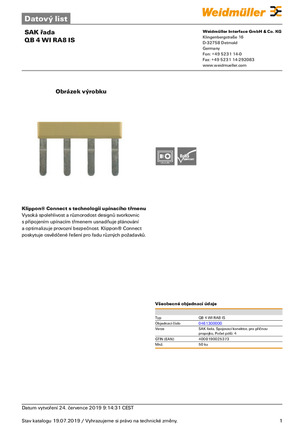 Łącznik krzyżowy Weidmüller QB 4 WI RA8 IS 0461300000, 50 szt.