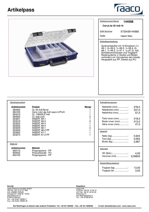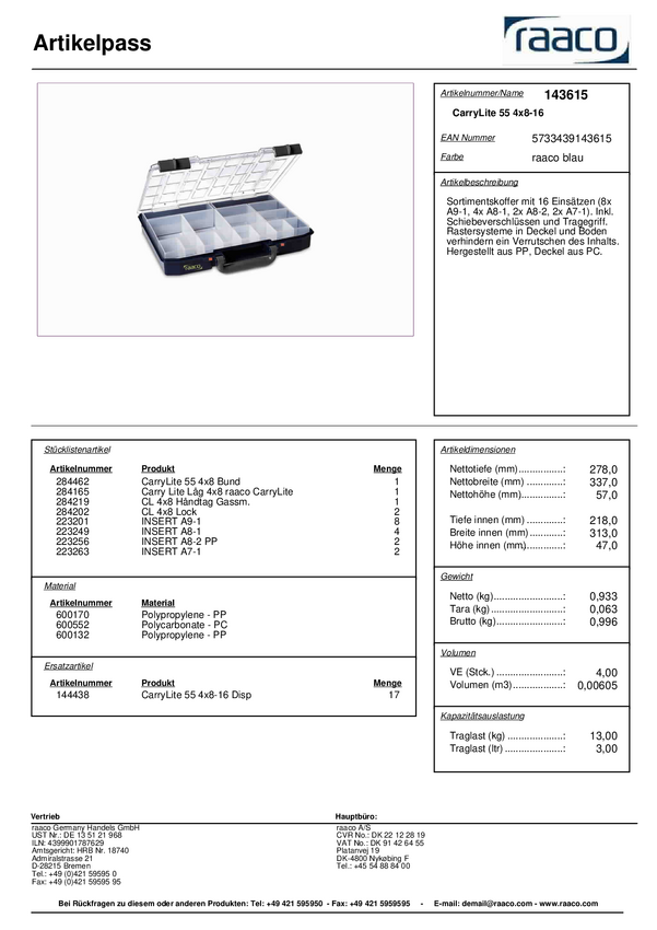 raaco CarryLite 55 4x8-16 Walizka (D x S x W) 337 x 278 x 57 mm Ilość przegród: 16 Content 1 szt.