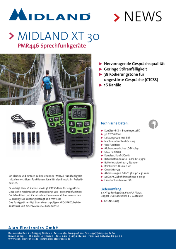 Midland XT50 C1178 Radiotelefon PMR Zestaw 2-elementowy
