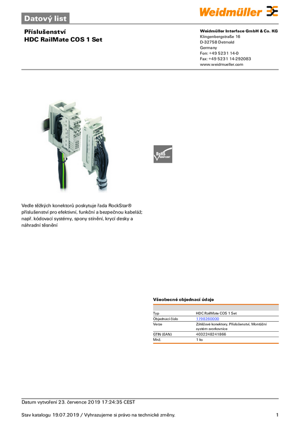 Weidmüller HDC RAILMATE COS 1 SET 1798260000 Złącza przemysłowe, Akcesoria, System montażowy szyn nośnych Zawartość: 1 s