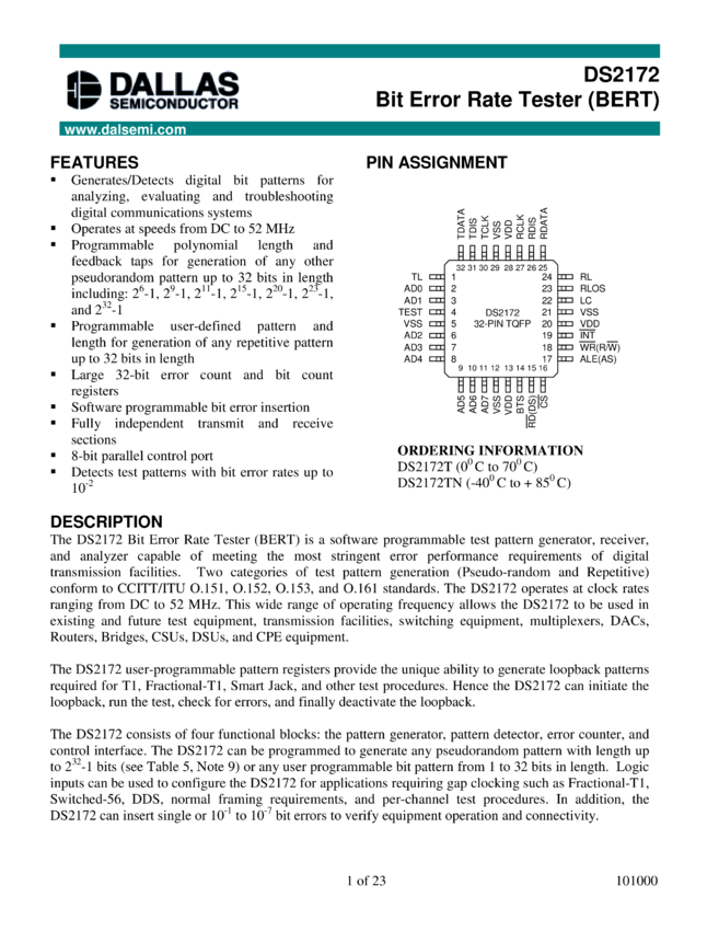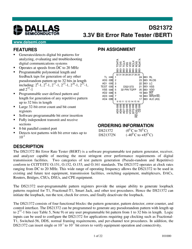DS21372 3.3V Bit Error Rate Tester (BERT)
