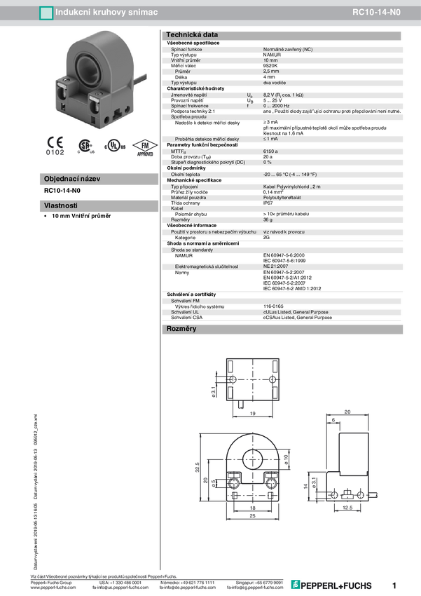 Pepperl+Fuchs Czujnik indukcyjny NAMUR RC10-14-N0 x2xGxxxD