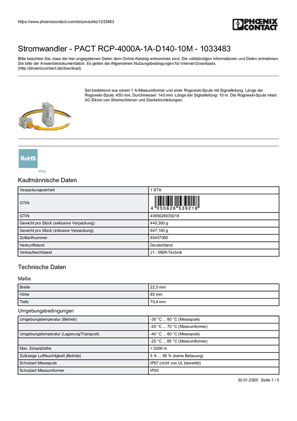 Phoenix Contact PACT RCP-4000A-1A-D140-10M 1033483 Moduł transformatora 1 szt.