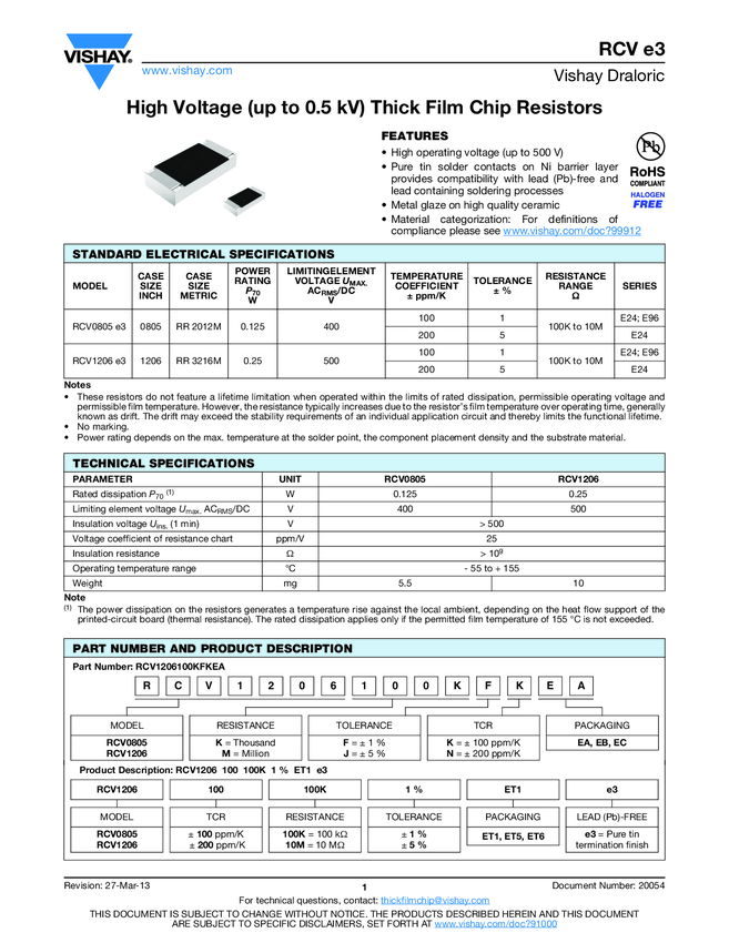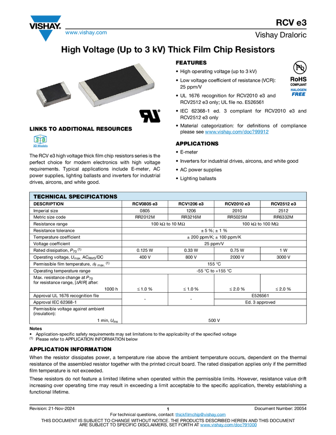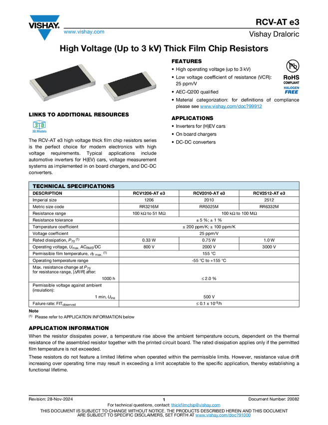 High Voltage (Up to 3 kV) Thick Film Chip Resistors