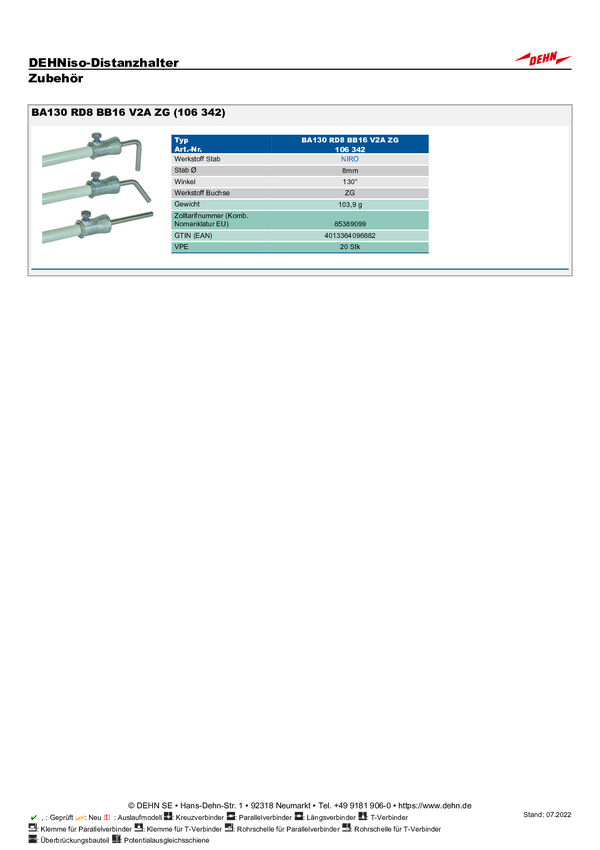 DEHN 106342 BA130 RD8 BB16 V2A ZG Adapter montażowy 1 szt.