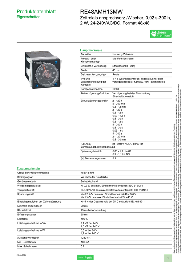 Schneider Electric RE48AMH13MW Przekaźnik czasowy 1 szt.