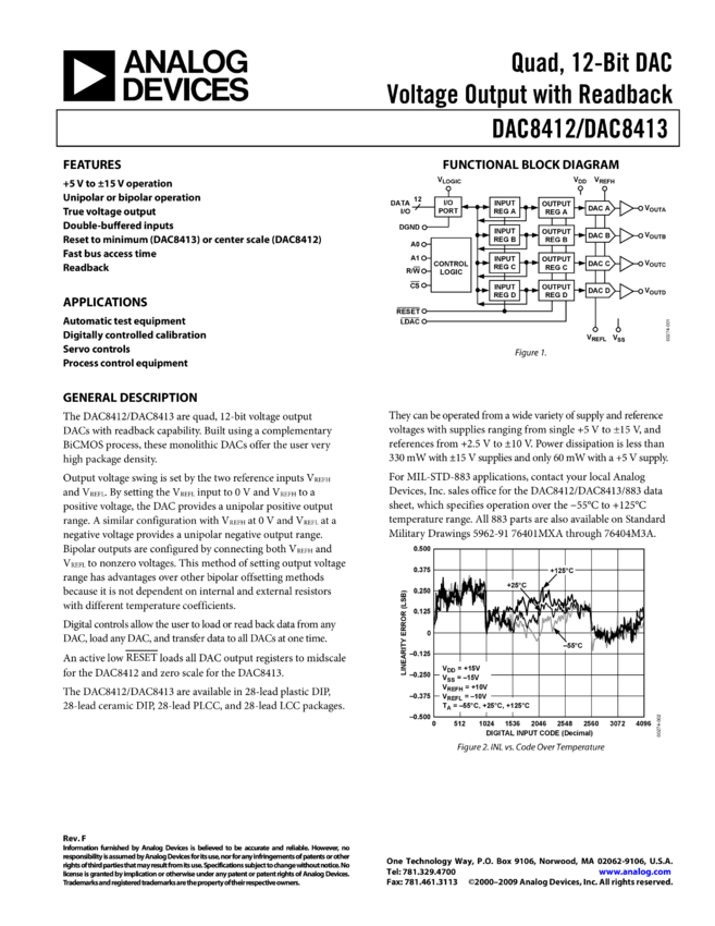 DAC8412: Quad, 12-Bit DAC Voltage Output with Readback