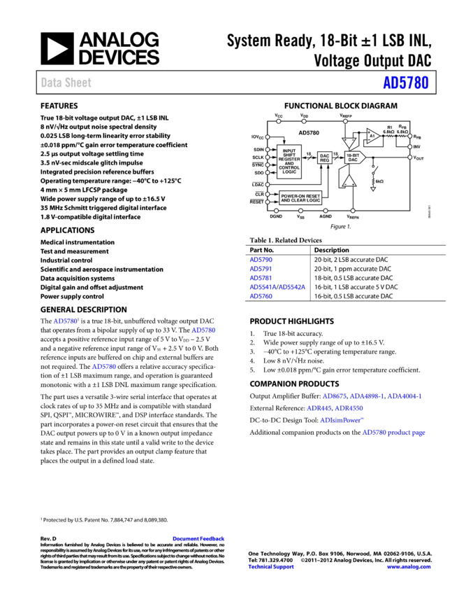 AD5780: System Ready, 18-Bit ±1 LSB INL, Voltage Output DAC
