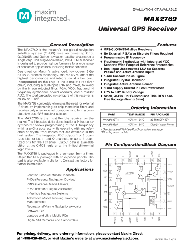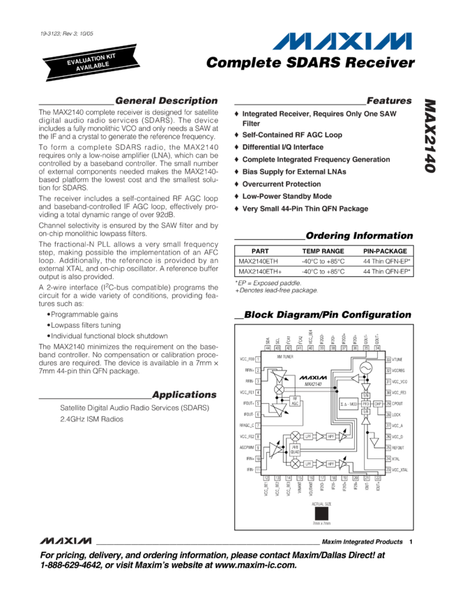MAX7042 308MHz/315MHz/418MHz/433.92MHz Low-Power, FSK Superheterodyne Receiver