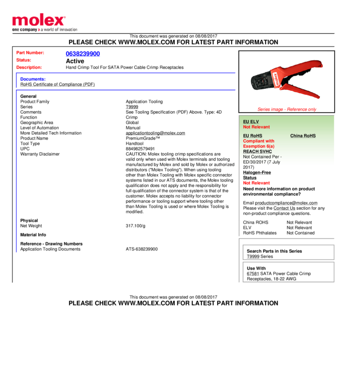 Hand Crimp Tool For SATA Power Cable Crimp Receptacles