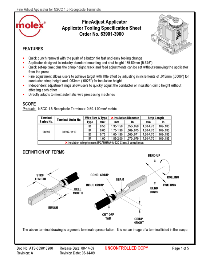 FineAdjust Applicator For 98897 Series NSCC 1.50mm Receptacle Terminals