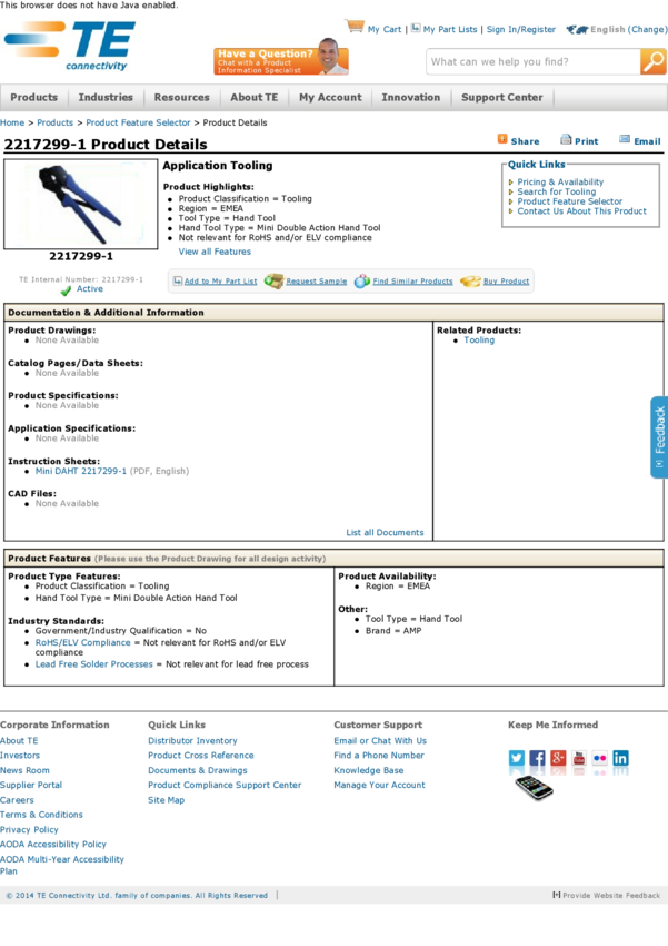 Hand Tool For Crimp Snap-In Micro MATE-N-LOK Receptacle Contacts