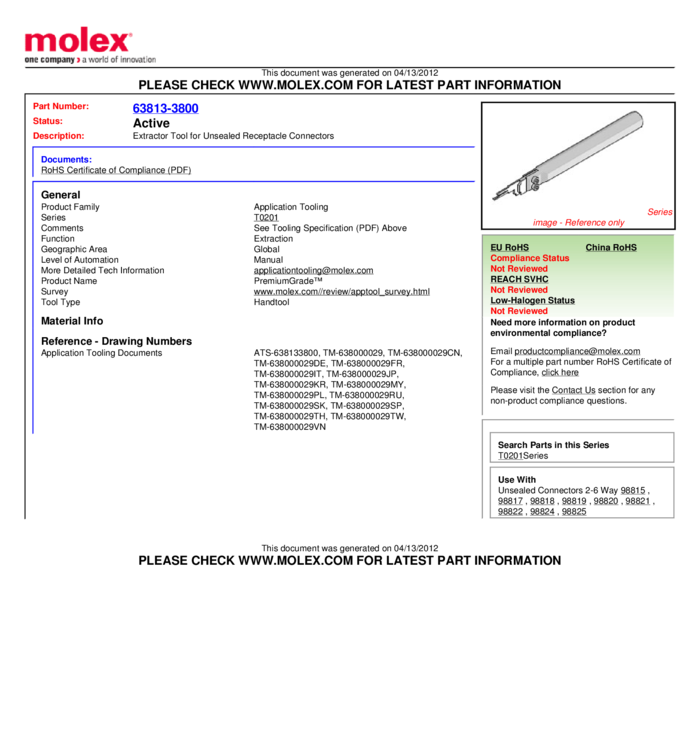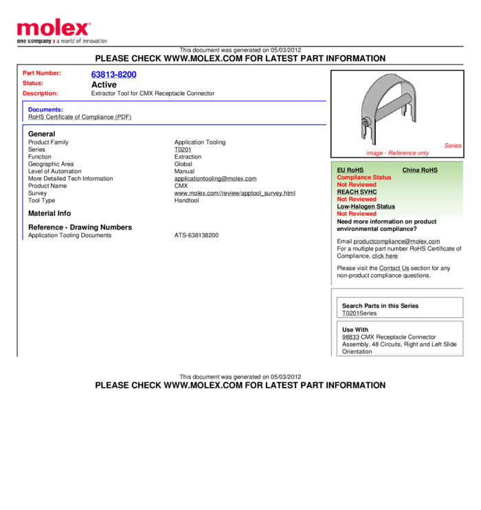 Extractor Tool for 98833 Series CMX Receptacle Connectors