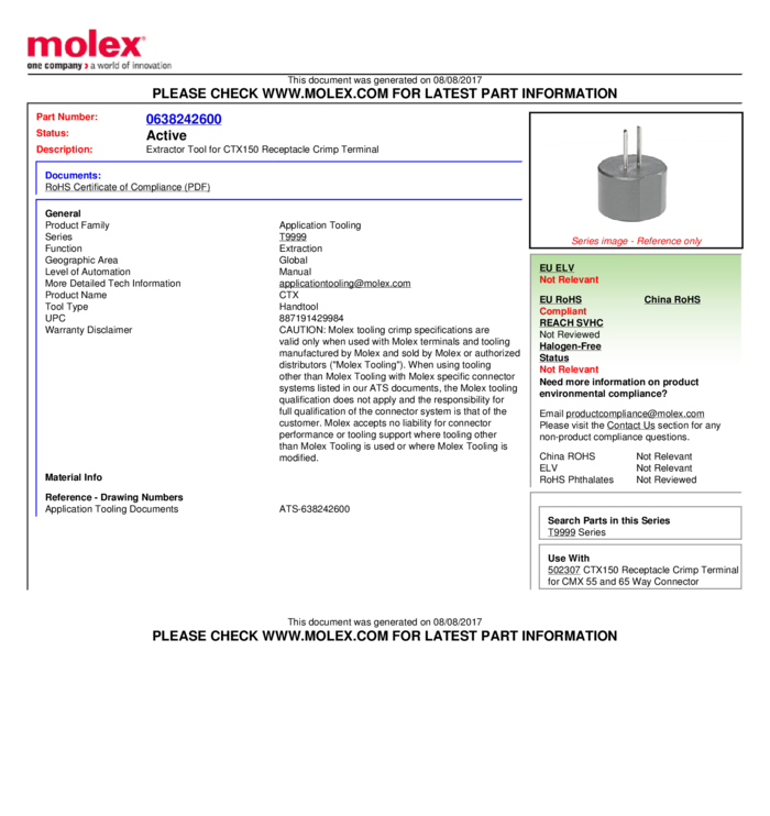 Extractor Tool for 502307 Series CTX150 Receptacle Crimp Terminals