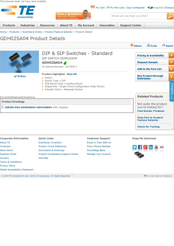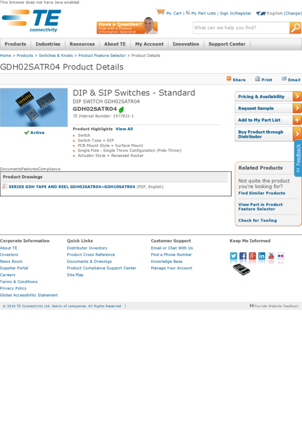 Switch DIP ON OFF SPST 2 Recessed Slide 0.025A 24VDC Gull Wing 1000Cycle 1.27mm SMD T/R