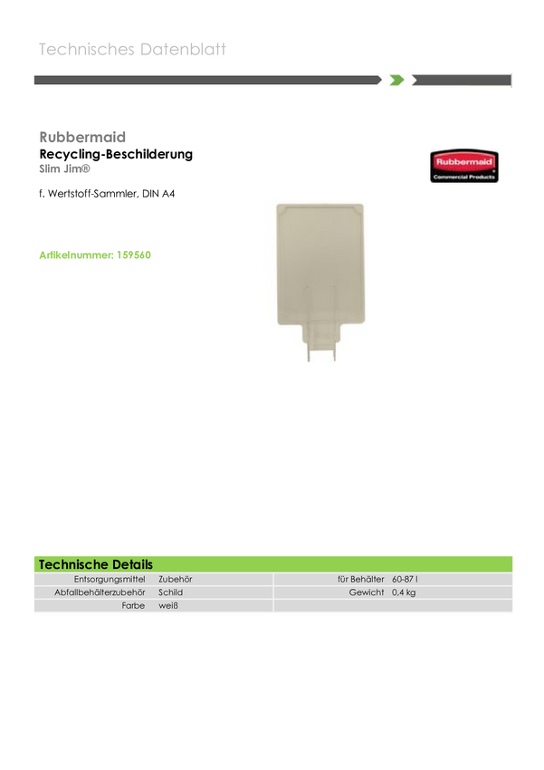 Rubbermaid 5453001915210 Znak recyklingu N/A 1 szt.