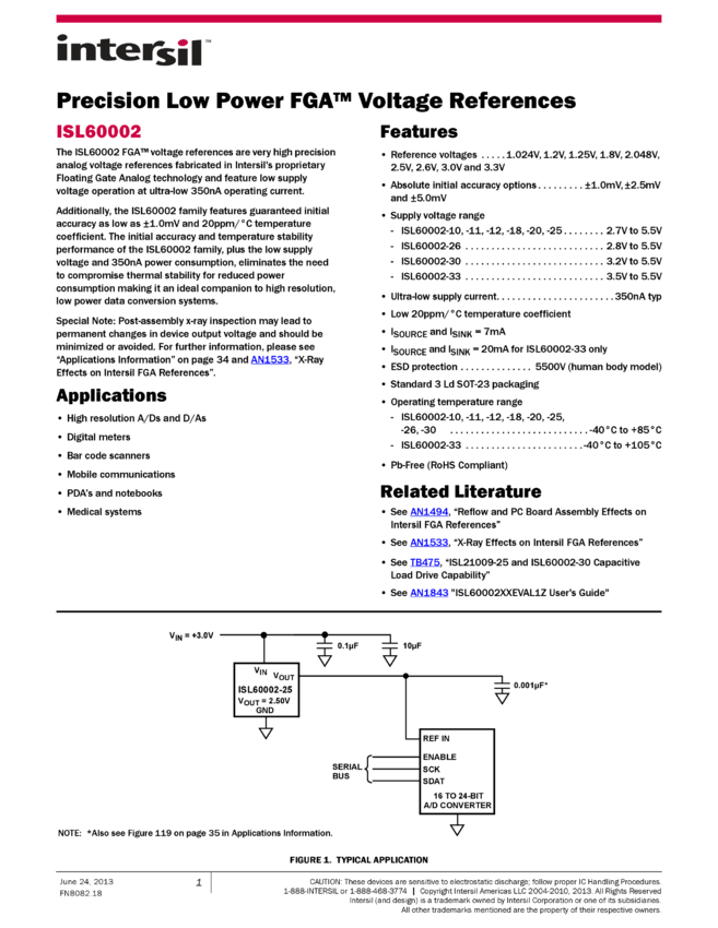 High Voltage Input Precision, Low Noise FGA™ Voltage References