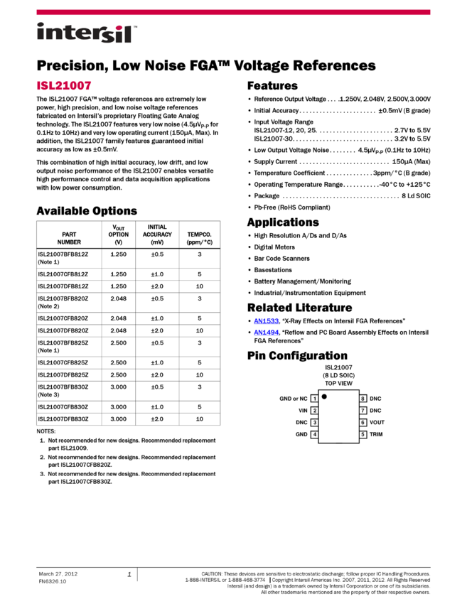 MAX6012, MAX6021, MAX6025, MAX6030, MAX6041, MAX6045, MAX6050 Precision, Low-Power, Low-Dropout, SOT23-3 Voltage References