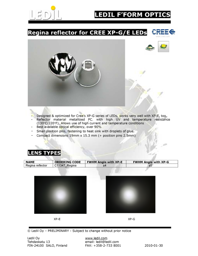 Reflektor REGINA-XP, , do diod LED High Power CREE seria XP-E i XP-G, Ledil
