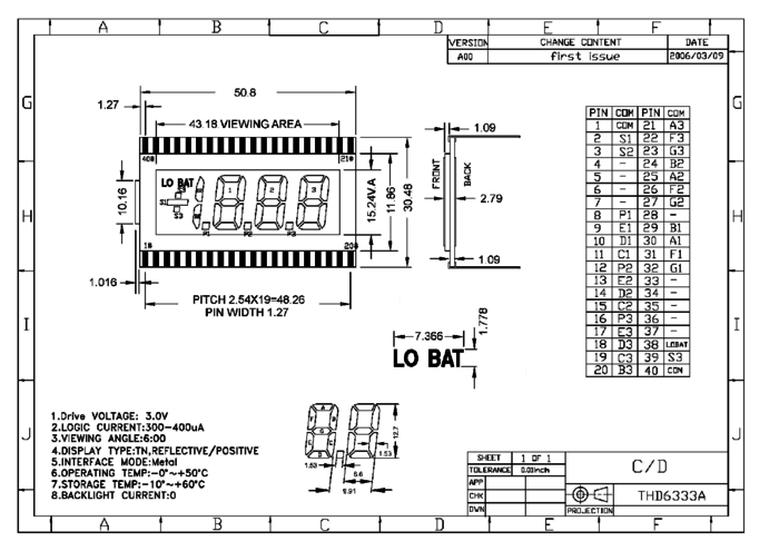 Wyświetlacz LCD 3.5- cyfrowy + LO BAT, TN, refleksyjny, cyfry 12.7mm