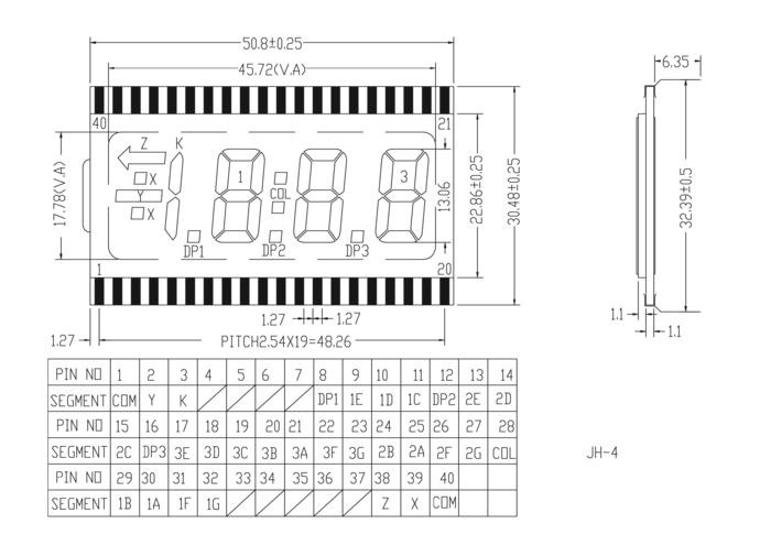 Wyświetlacz LCD, TN, refleksyjny, do przyrządów pomiarowych, [ itp.], wyprowadzenie 25 nóżek, wymiary 34.5x55mm