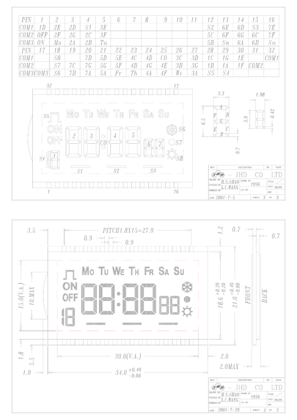 Wyświetlacz LCD, czas, data, ikonki, pozytywowy, refleksyjny, połączenie Zebra [rubber connector], wymiary 34x21x2mm, -20C/+60C