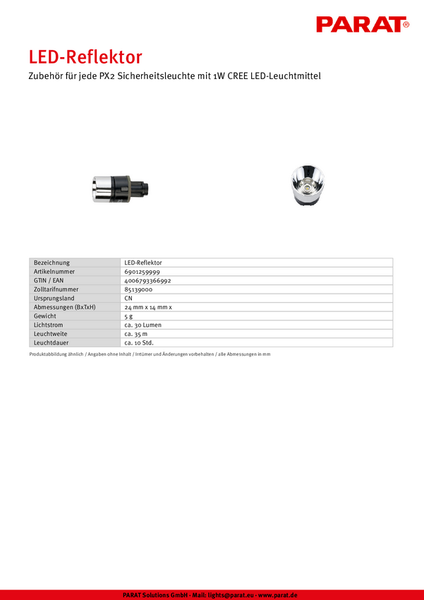 Lampa zapasowa Parat Reflector Parat PX2 6901259999