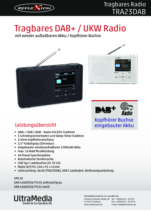 Reflexion TRA23DAB/WH