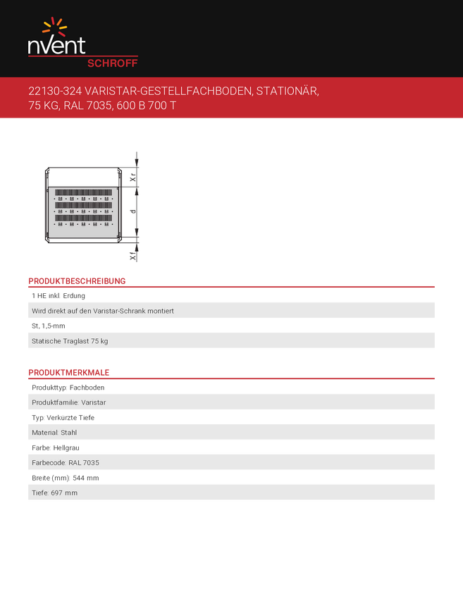 nVent SCHROFF 22130326 Półka regału (S x G) 600 mm x 797 mm 1 szt.