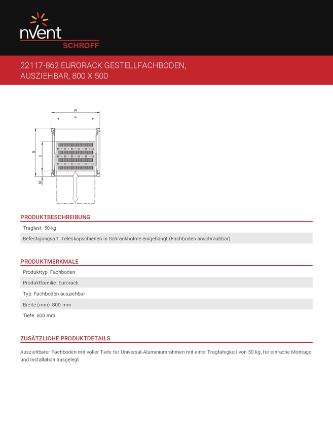 Półka regału nVent SCHROFF 22117862 22117862, 1 szt.