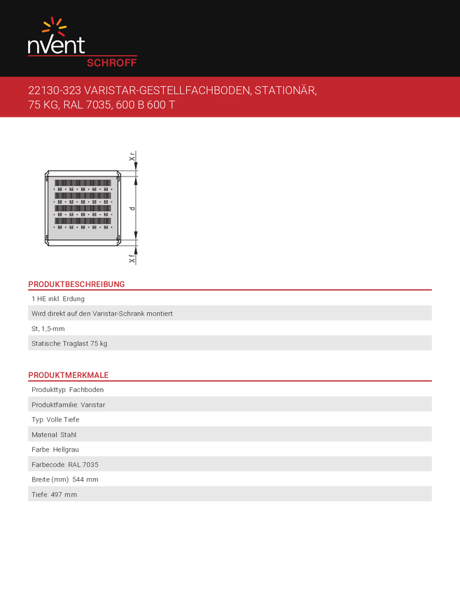 Półka regału nVent SCHROFF 22130327 22130327, 1 szt.