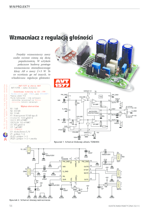 AVT1577 A Wzmacniacz z regulacją głośności - płytka drukowana