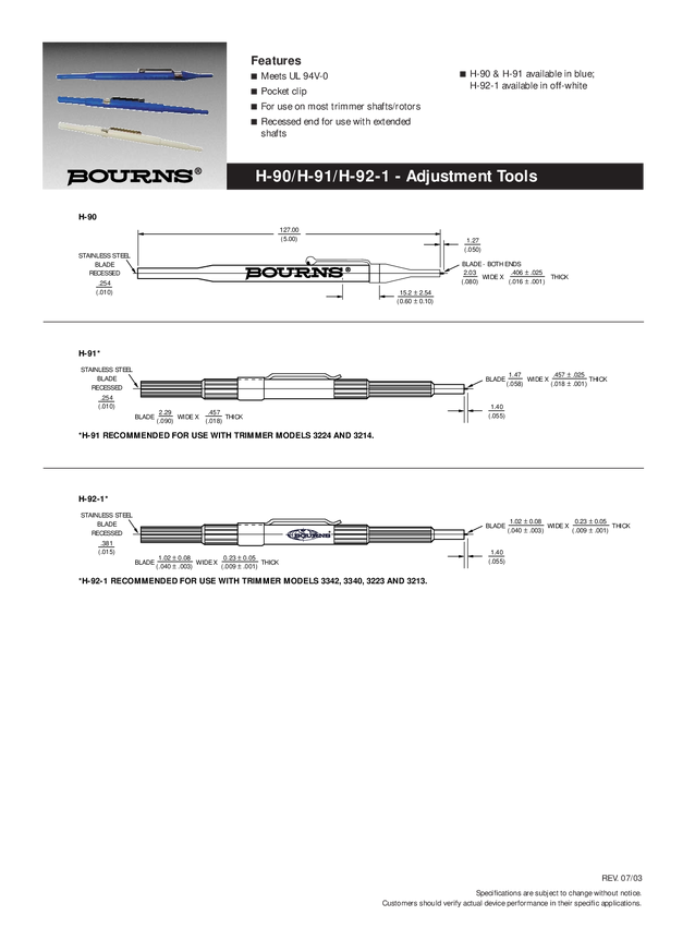 Narzędzie do regulacji potencjometrów Bourns niebieski H-90