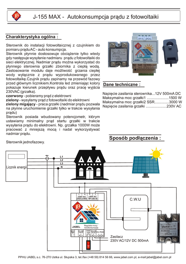J-155 MAX - Autokonsumpcja prądu. Fotowoltaika. Sterownik do regulacji mocy.