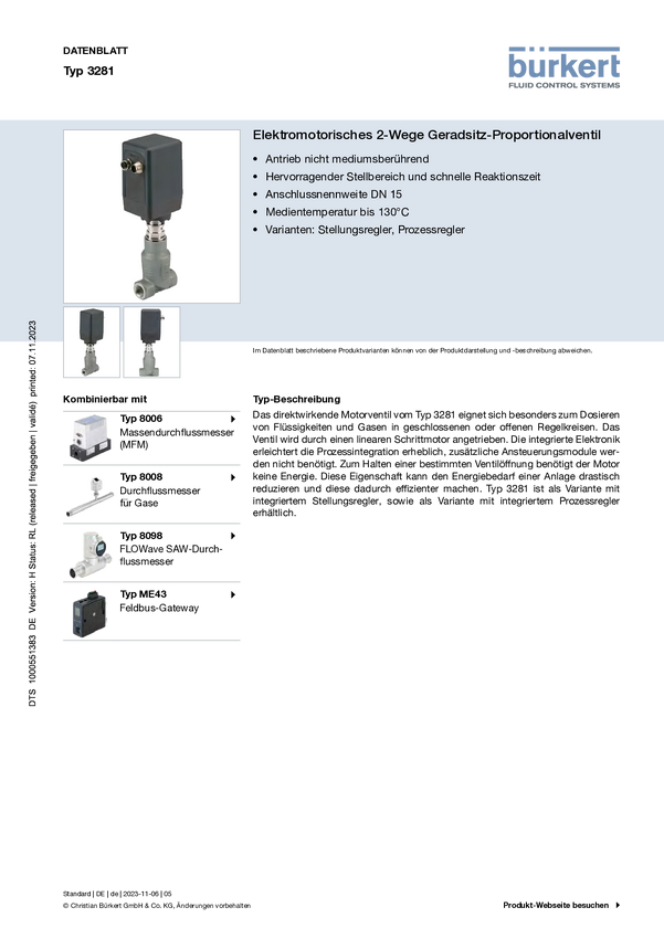 Zawór regulacji ciśnienia proporcjonalny Bürkert 3281 20014453