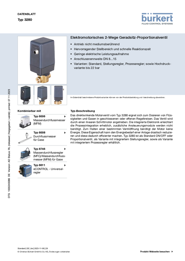 Zawór regulacji ciśnienia proporcjonalny Bürkert 3280 20024705