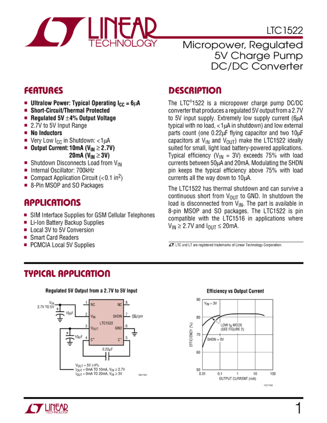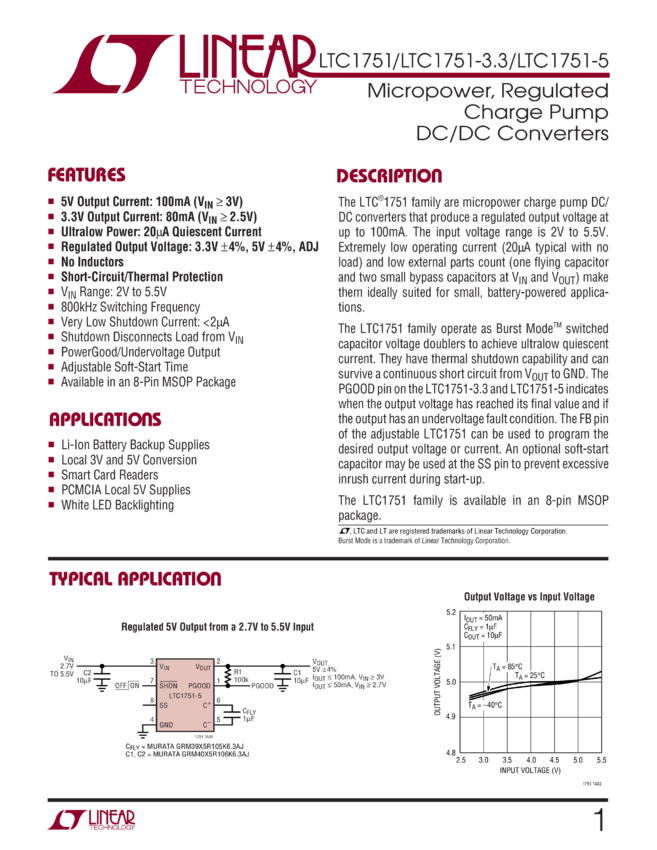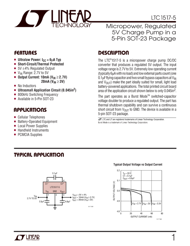 Micropower, Regulated 5V Charge Pump DC/DC Converter