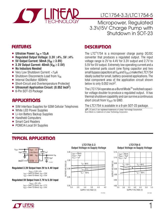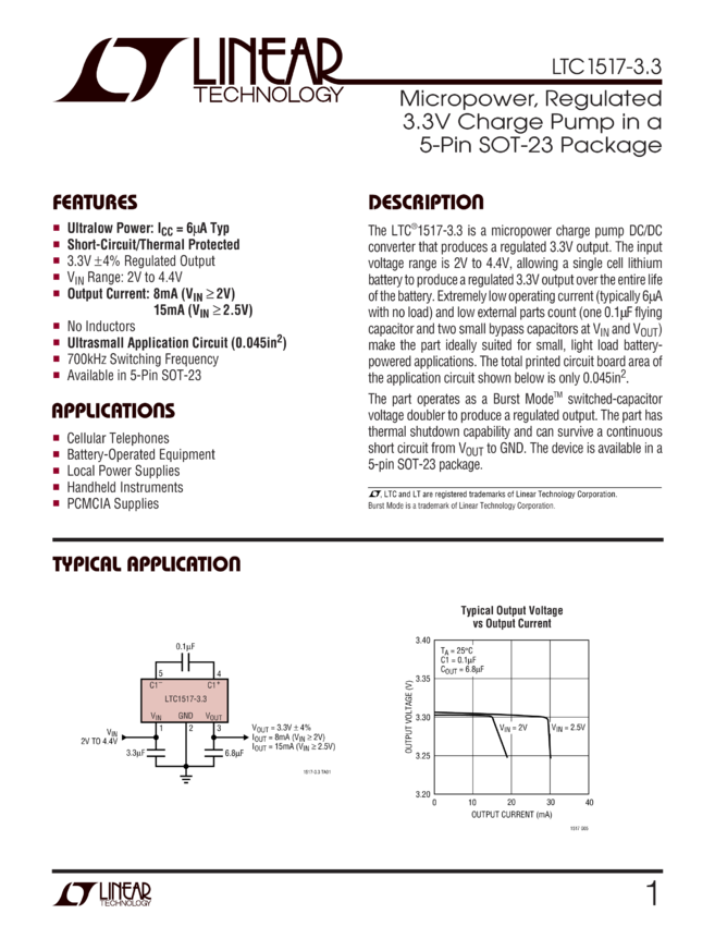 Micropower, Regulated 3.3V Charge Pump in a 5-Pin SOT-23 Package