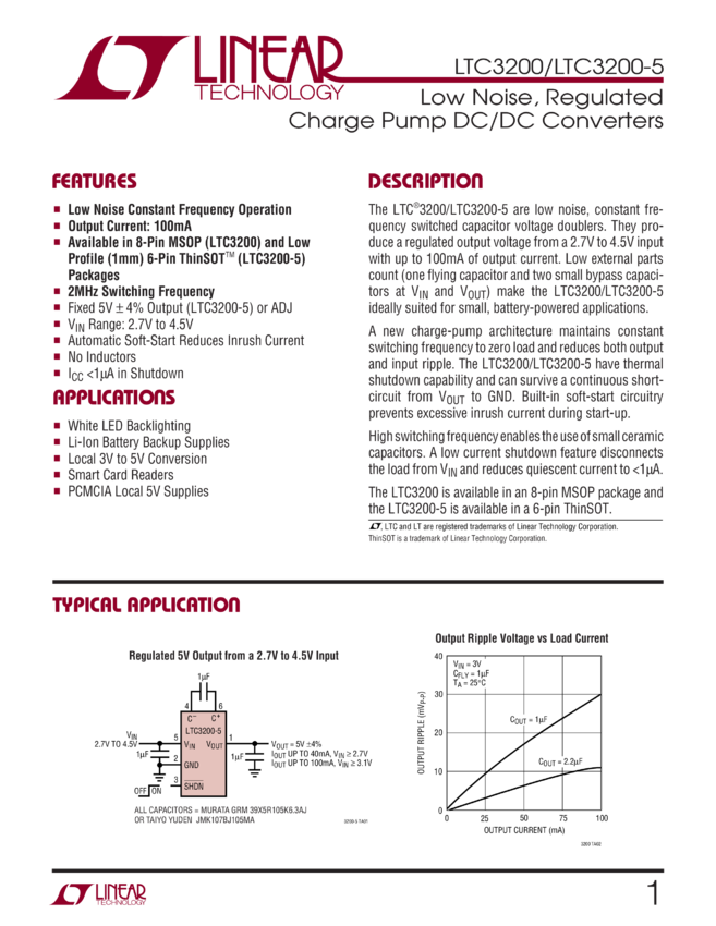 Low Noise, Regulated Charge Pump DC/DC Converters