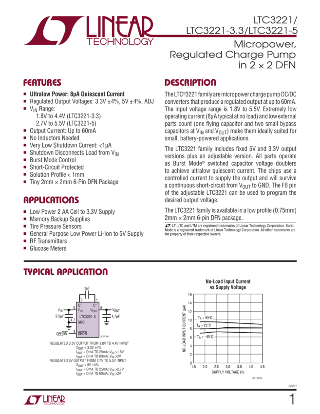 Micropower, Regulated Charge Pump in 2 x 2 DFN