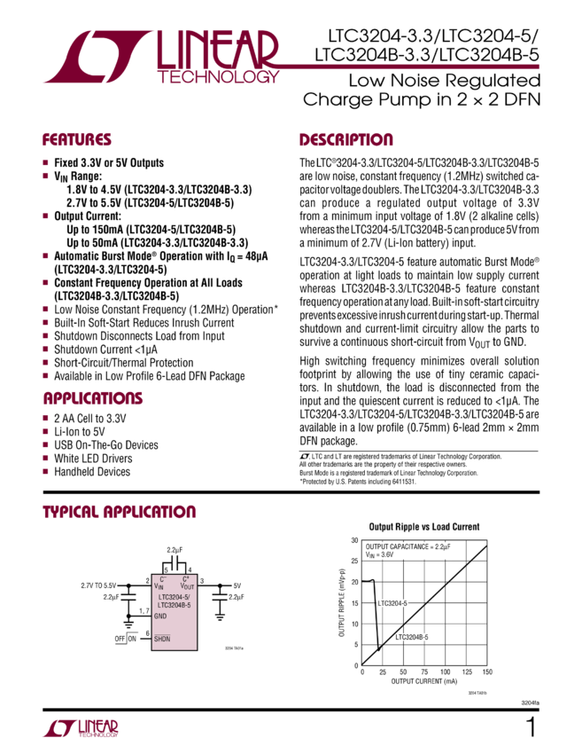 Low Noise Regulated Charge Pump in 2 × 2 DFN