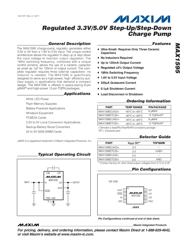 MAX1595 Regulated 3.3V/5.0V Step-Up/Step-Down Charge Pump
