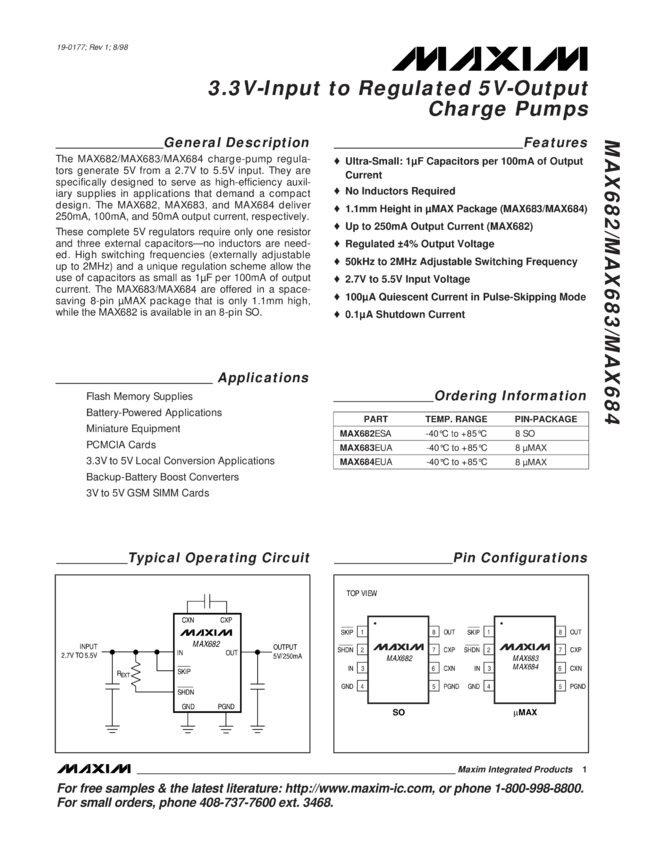 MAX682, MAX683, MAX684 3.3V Input to Regulated 5V Output Charge Pumps